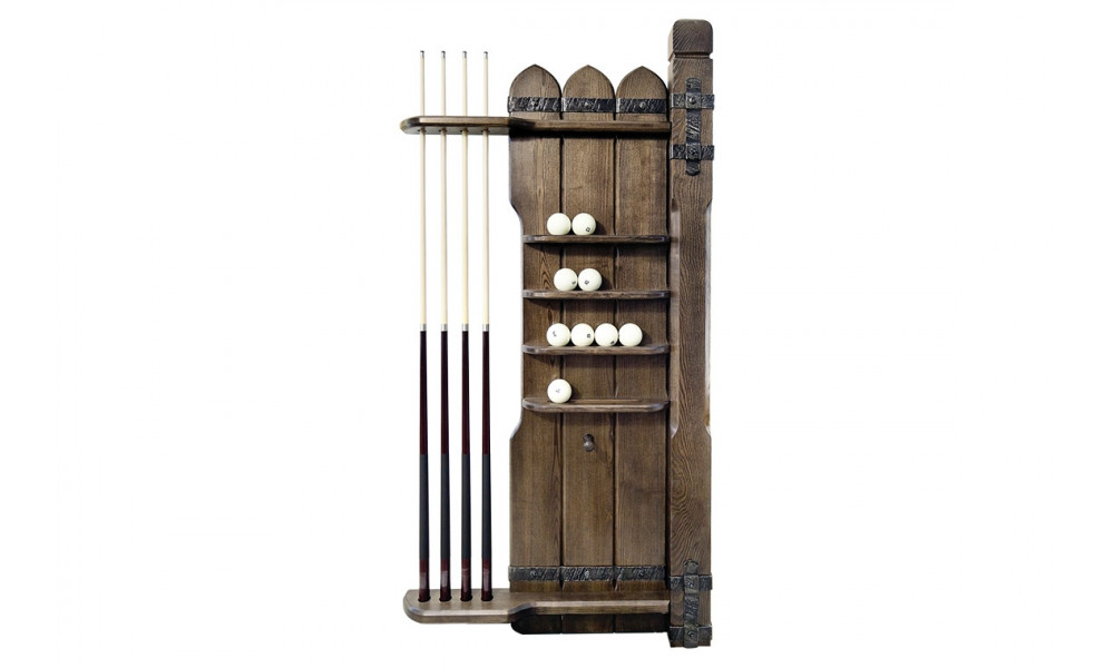Большая настенная киевница на четыре кия в стиле бильярдного стола "Витязь-Премиум". Кии располагаются строго вертикально, что позволяет сохранять их прямолинейность.